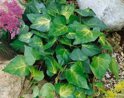The large decorative leaves of this evergreen ivy have a bold central splash of yellow. good wall cover